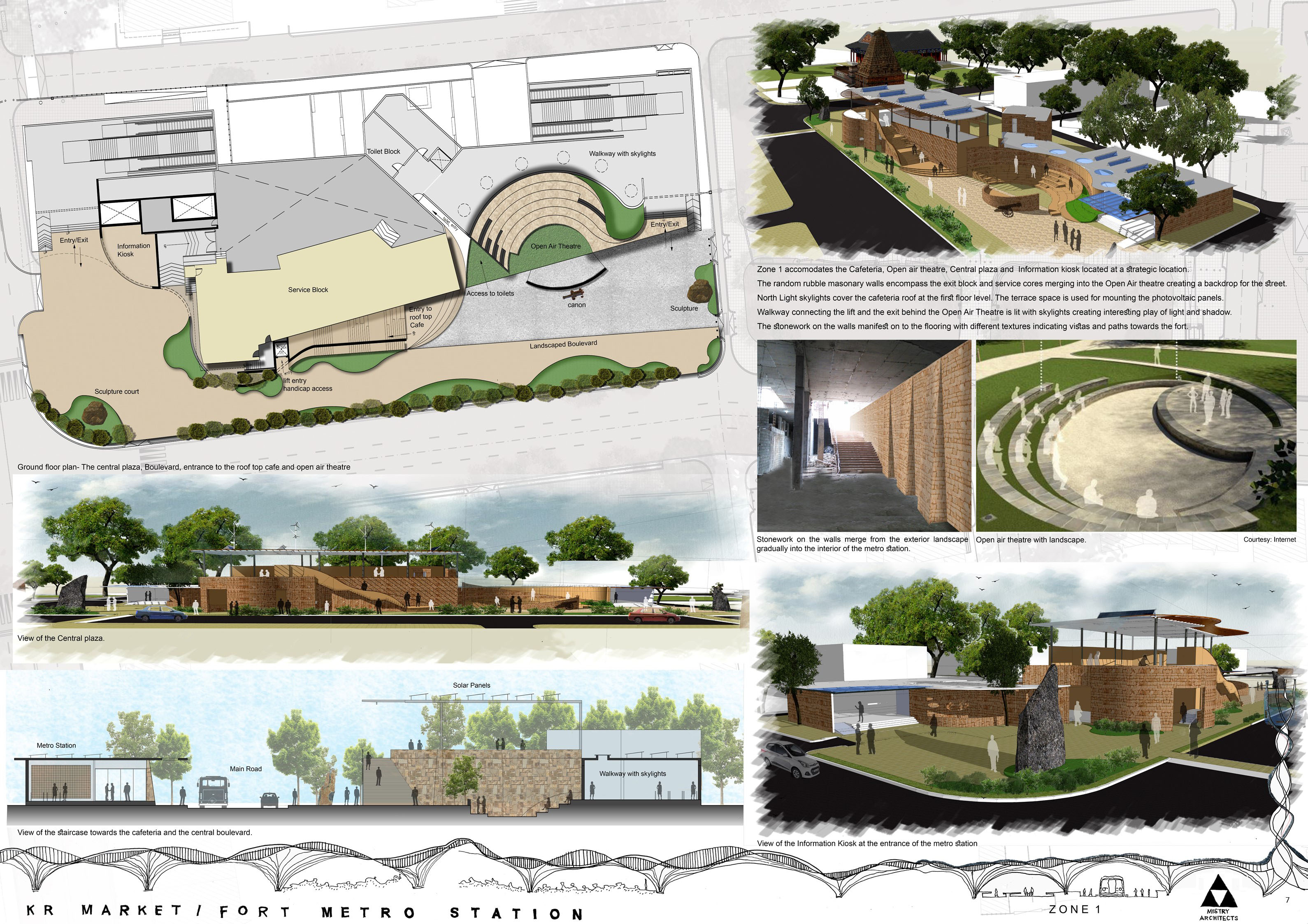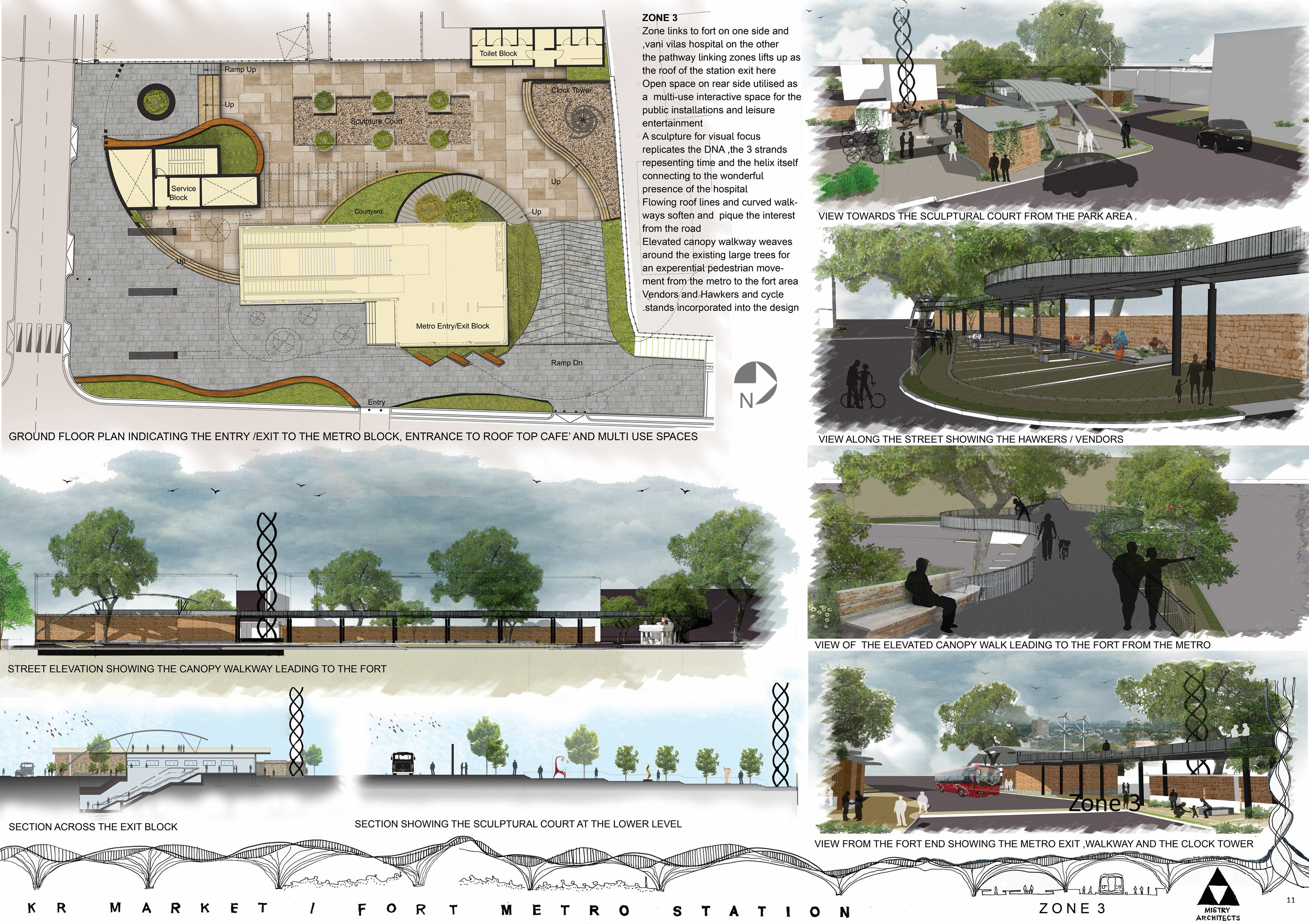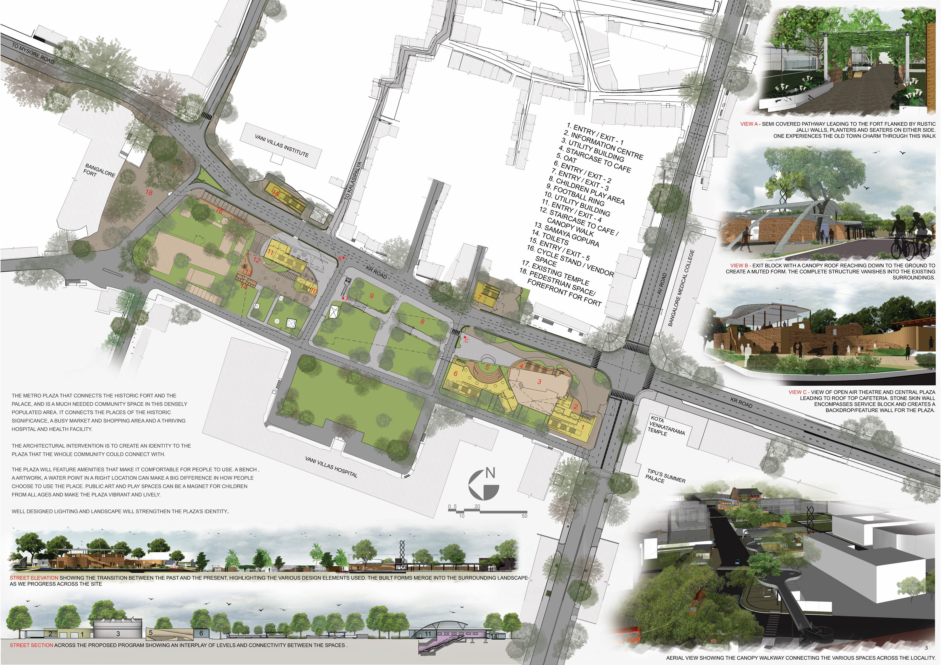 The proposed plaza creates a unique identity to this metro station by connecting the fort and the palace. It is a much-needed community space in this densely populated area and links the places of historic significance, a busy market and the ever buzzing Vani villas hospital.